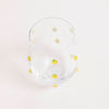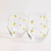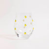 Fun and fruity, this stemless wine glass is decorated with whimiscal lemon icons. The perfect addition to any bar cart or fun table setting.
