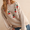 Sweet and charming is how we would describe this sweater. The crochet cherries that decorate this sweater swing with some movement and the pom pom detail is just so cute. Model is wearing size S Measurements taken from size S Height - 5' 7 1/2" / 175.3CM
