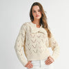 Chevron knit long sleeve pullover knit sweater top with large front bow detail.