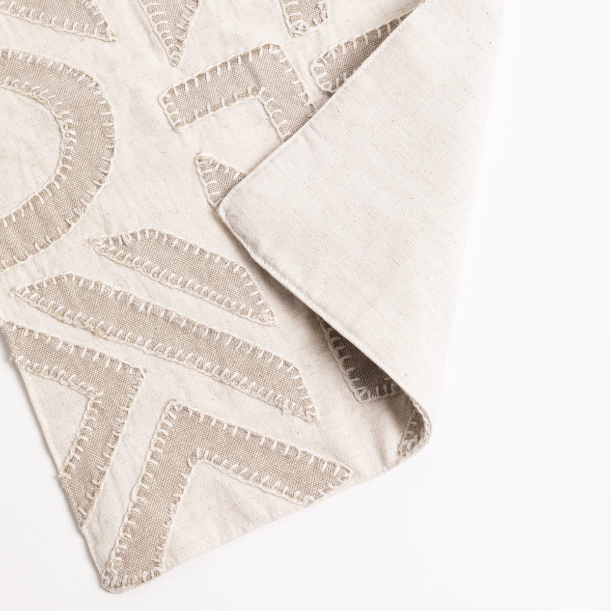 This handsewn applique placemat showcases exquisite artisanal embroidery. Using a technique that has been passed down through generations, craftswomen from the village of Chohan, India, carefully hand-stitch every piece, sometimes over the course of several days. Each of these handstitched pieces in neutral tones truly shines; beautifully handcrafted for your table.