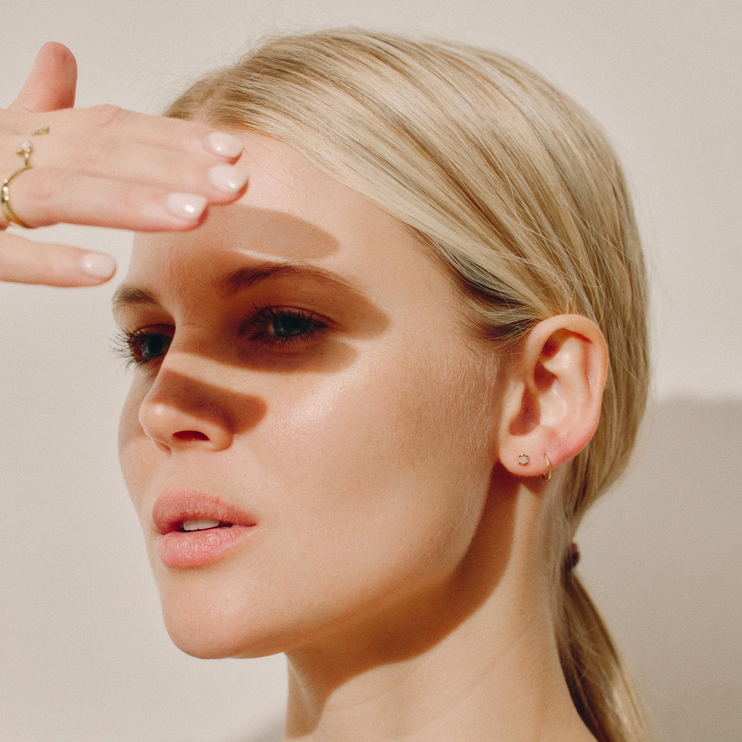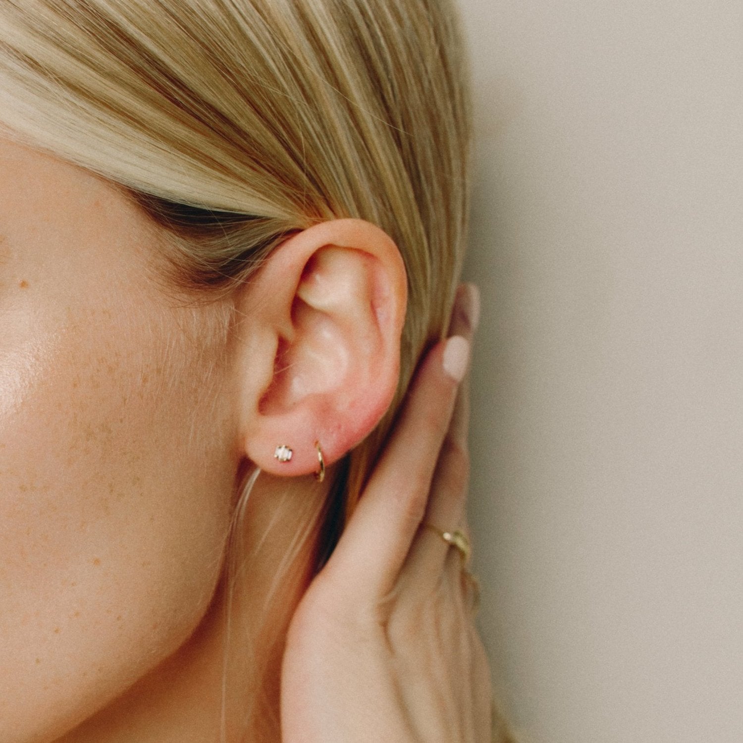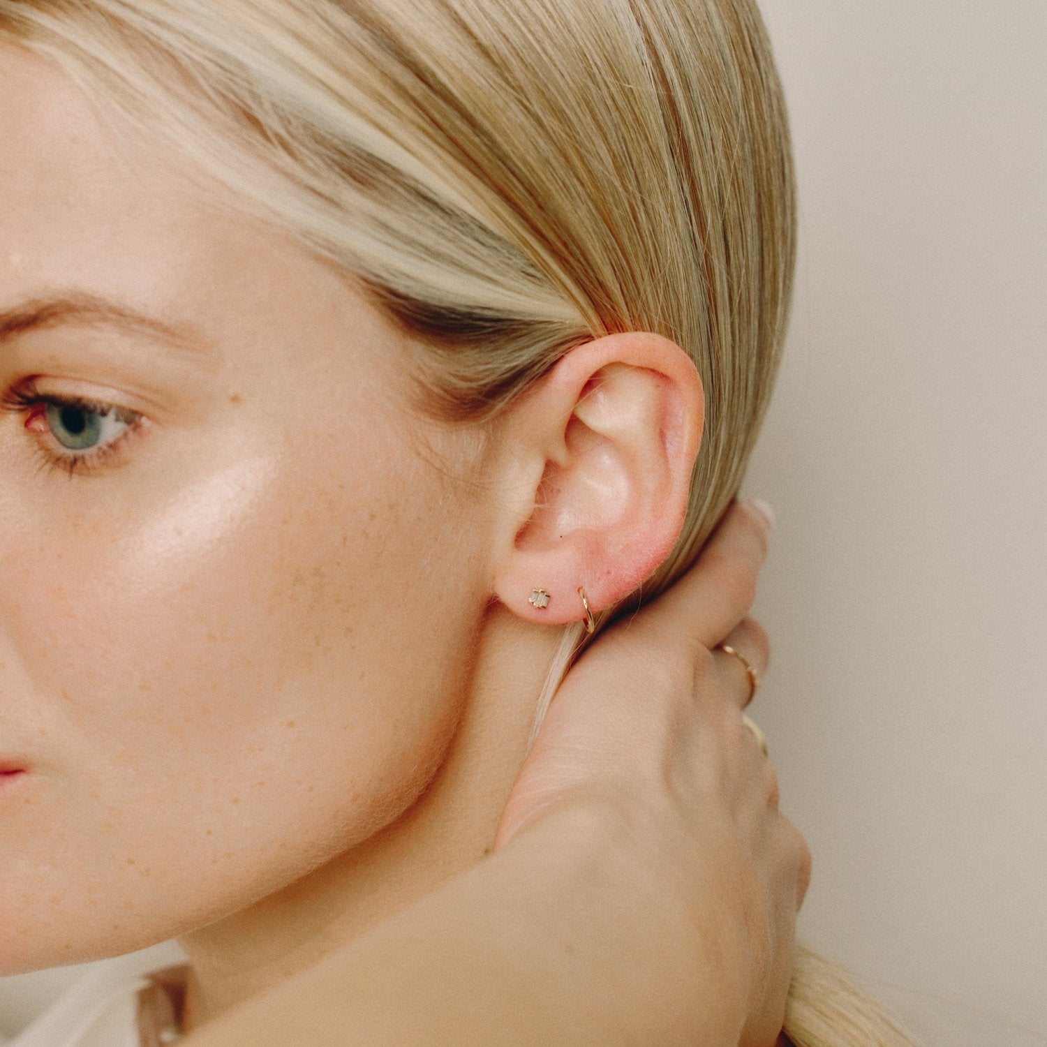 Add delicate shimmer to your earring collection with the Bianca baguette cluster solid gold stud earrings. Mixing classic-cut CZ stones with a modern arrangment, these gold earring studs pair well with edgy earring stacks as well as traditional refined looks. Pair yours with other baguette CZ jewelry, like our Elsa Baguette Pendant 14k Solid Gold Necklace or Elsa Gold Baguette Ring.