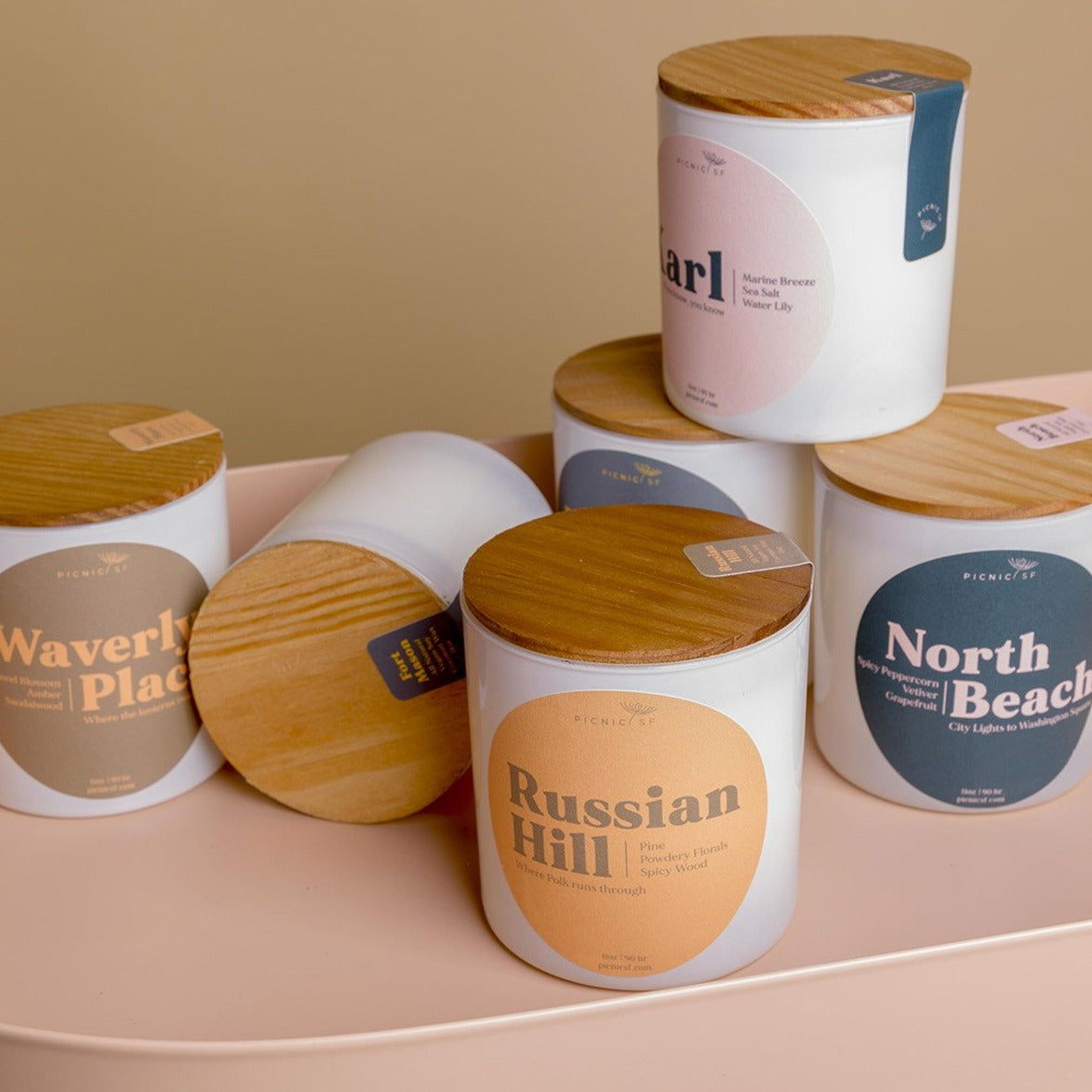 This candle remind us of a warm sunny day sitting on the grassy fields of Dolores park admiring the city views- the meeting point between the Castro, the Mission and the world. This candle evokes juicy citrus and sharp grassy coriander.