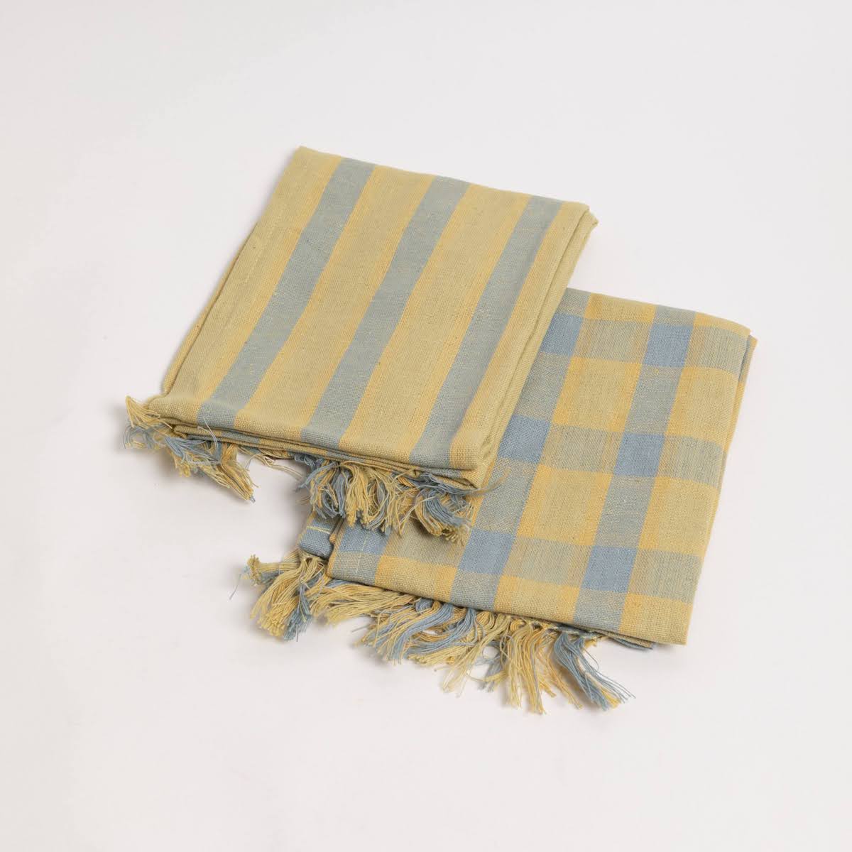 This set of two dish towels includes one striped and one checked tea towel, the lightweight fabric make these towels quick to dry. Finished with a fringe, these tea towels are charming and sweet.