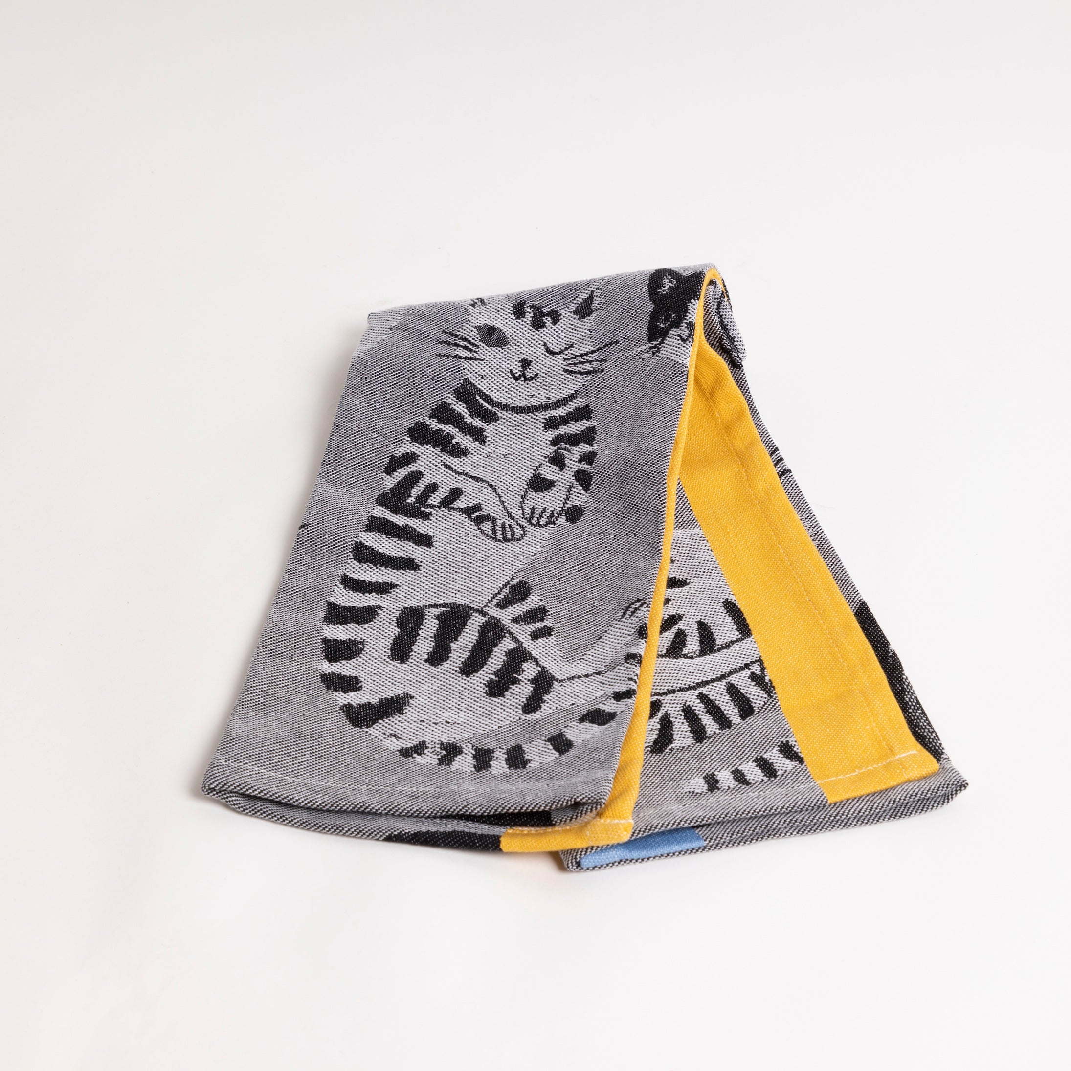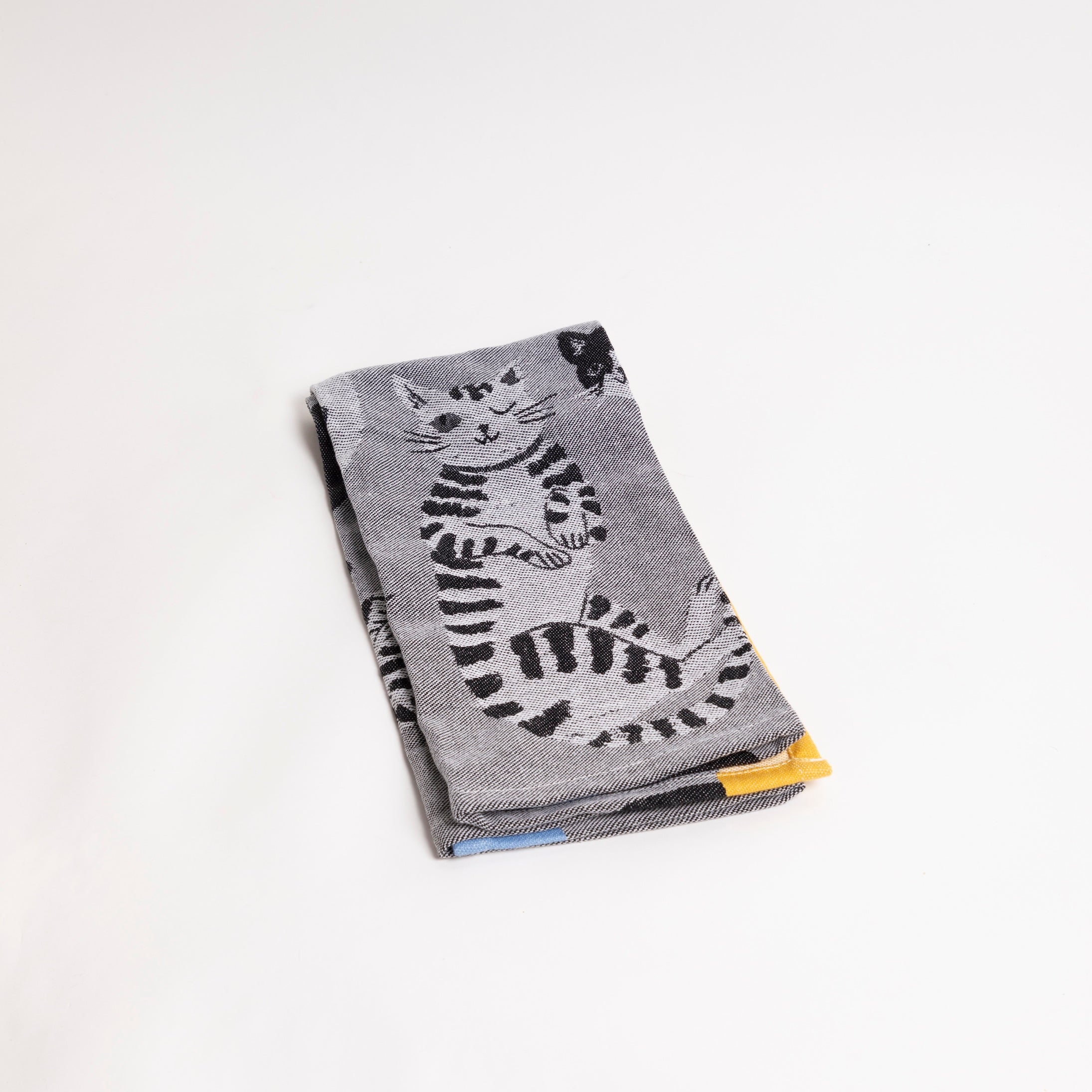 Truly a kitchen workhorse, this cute cat patterned jacquard weave tea towel is the epitome of durability meets joyful design .